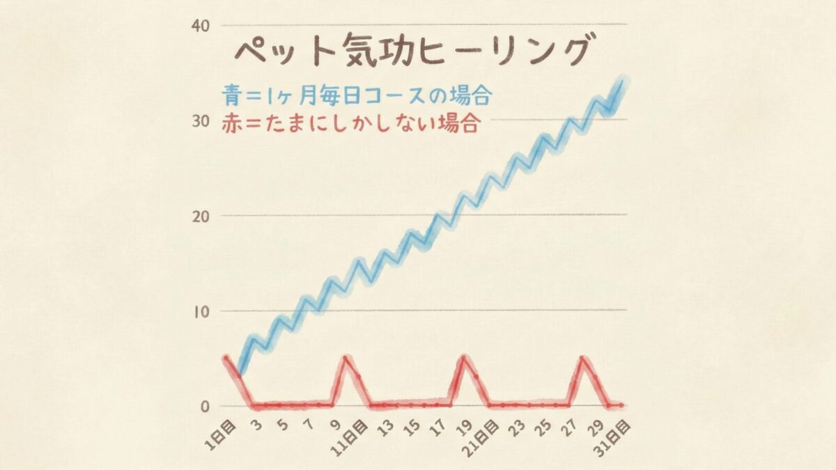 一度のヒーリングで体調が大きく改善するペットちゃんも多くいますが、時間が経つとエネルギーは少しずつ元の状態に戻っていきます。
