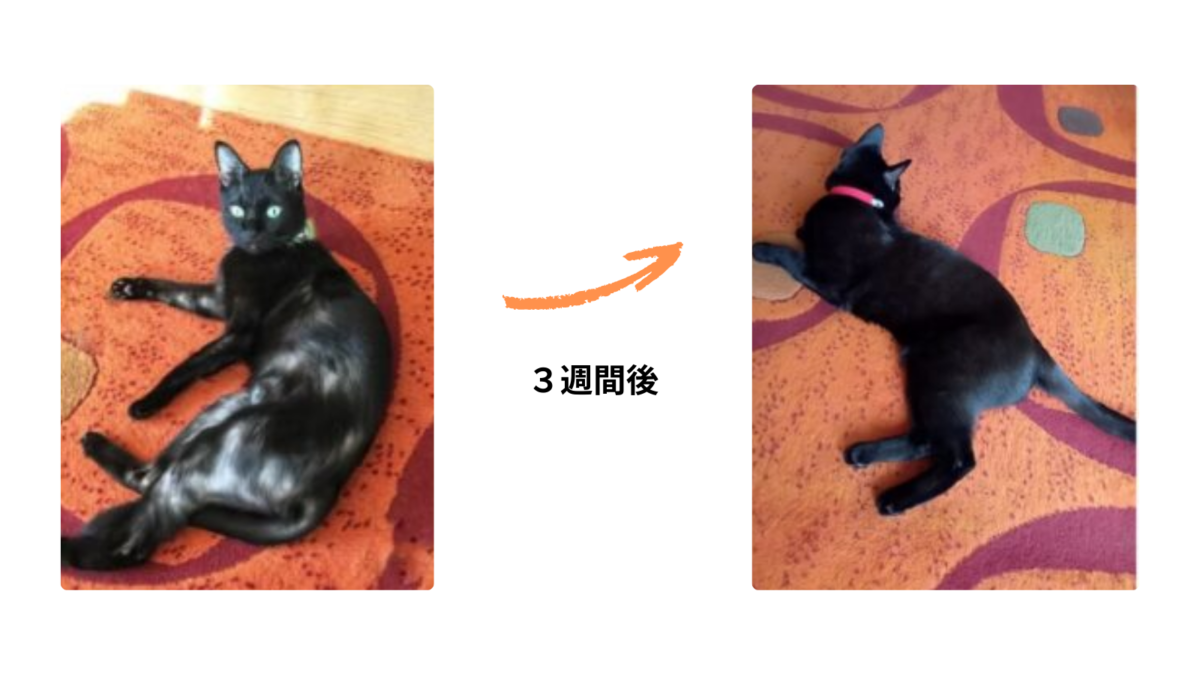 こちらの写真は、ペットヒーリングを受ける中で見られた毛並みの変化の一例です。